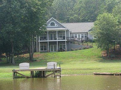 REDUCED $90,000 from orginal listing price. Beautiful Home on Big Tallapoosa part of Lake Wedowee!! This home sites on 8 acres that offer a lot of privacy. Entry way opens into main level with open living room with fire place, D/room and kitchen with custom cabinetry and breakfast bar. This main area is under beautiful wood planked cathedral ceilings. Master Suite on the main features a sitting area (sun-room) overlooking the lake, door leading to porches. Another door leads you to a huge workshop so you can work or tinker with leaving home. Stairs from the main level lead upstairs to a large 16x16 bedroom & bath. There is a partially finished basement with additional 1350 sq. ft. room enough for 2/3 B/rooms, BA, with transom windows & sheet rock walls, French doors that lead to easy walk to 170' of water & dock. There is a 2 car oversized garage & storage. The steps lead up to an unfinished bonus-room above the garage. The huge laundry-room on main level has numerous cabinets & a desk for your sewing & projects