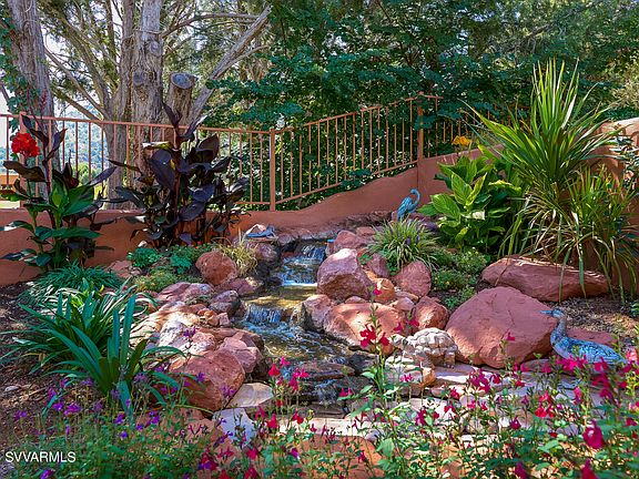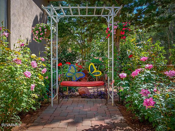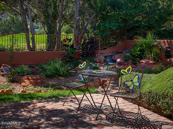 Experience this outstanding 4 BR, 3 BA Sedona Golf Resort residence - featuring panoramic red rock views, a lush backyard haven & vistas of the verdant fairway. The gracious entry opens to the fabulous 2686 sq. ft. split floorplan & the high ceilings provide a beautiful, bright ambiance. The captivating verdure of the gorgeous outdoor living area is enjoyed from the LR, DR, Kitchen & Primary Suite. The tastefully remodeled kitchen embraces sophisticated design elements like Calacatta Quartz countertops, maple cabinetry w/dove grey finish & brushed nickel fixtures. In addition to the lovely Primary Suite, there is a 2nd guest suite w/ bath, + 2 add'l guest rms/offices which share a full BA. New roof in May 2023! See supplement for more info about the recent updates & features of this home. Ready to be charmed? The lush, fenced backyard includes a covered patio, privacy divider screens, open patio area, trellis, enchanting water feature, vibrant foliage, mature trees, and golf course greenery.