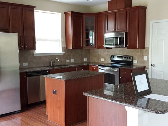 Beautiful stone accented home with three bedrooms, 2.5 bath w/loft. Stunning open floorplan w/ huge family opening into sunny breakfast room & fabulous gourmet kit. Kitchen has DOUBLE granite islands, with 42" cabinets offering ample storage space. 2nd level boasts spacious master with generous master bath.