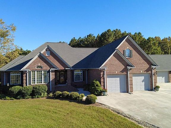 Lovely custom 4 sided brick three Bedroom Three Bath one level home with almost 7 acres in sought after Dawnville area. Excellent condition. Minutes to Dalton, Chatsworth and I-75. New Roof, New kitchen granite countertops, updated appliances,new and updated HVAC units, large fenced in back yard large laundry/mud room, Hardwood, ceramic tile, and carpet. Up stairs recreation/theater room complete with separate kitchen (large screen TV remains). Large detached brick double garage. Lake in front stocked with Blue Gill, bass, sun fish and bream. Master bedroom has his and her separate baths and closets. His bath has heated flooring. Alarm, intercom and central vaccum systems. Concrete Drive.