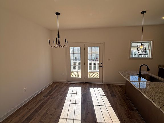 This beautiful townhouse features a spacious living room filled with natural light, an eat-in kitchen with a large island, Shaker-style cabinetry, and stainless steel appliances. The home offers three bedrooms, two and a half bathrooms, and a single-car garage. Enjoy nine-foot ceilings on the main level, a primary suite with a walk-in closet, and an unfinished bonus room with a walk-out patio behind the garage, complete with a roughed-in bathroom perfect for a recreation room, home office, or extra storage.
