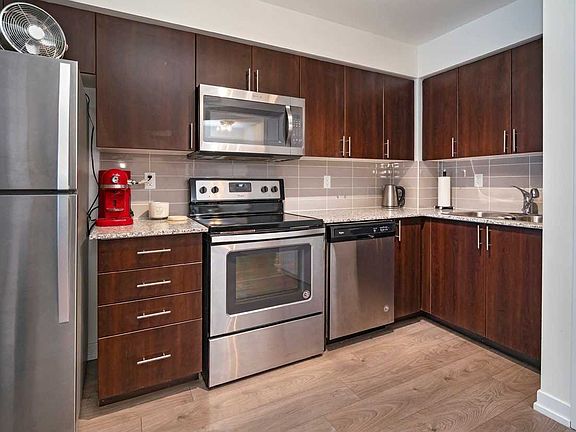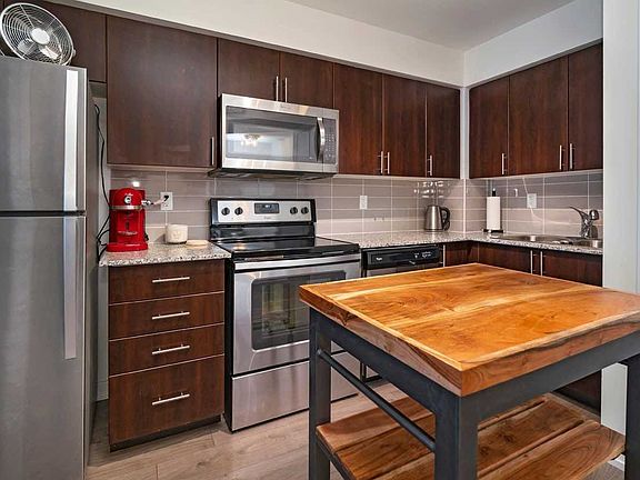 SUITE 615 SPECIFICS: - Appliances: Fridge, Stove, B/I Microwave, Dishwasher, Washer and Dryer - Spacious open-concept living area with walkout to a private balcony - Contemporary kitchen featuring stainless steel appliances, stone countertops and ample cabinet storage - Versatile den, ideal for a home office or a separate dining area - Sleek laminate flooring throughout - Primary bedroom features a double closet and large window that provides natural light - Convenient in-suite laundry - Unbeatable location with easy access to transit, shopping, dining and more! - Impressive Walk Score of 93/100! - Nearby parks include Campbell Avenue Park, Perth Square Park and Carlton Park. - Professionally managed by Landlord Property and Rental Management Inc. *Please go to the booking link to schedule a showing. Calls are not monitored as frequently*Community Amenities- Social room- Public transit- Shopping nearby- Parks nearby- No Smoking allowed- TheaterSuite Amenities- Fridge- Stove- Washer in suite- Dishwasher available- Balconies- City views- Dryer in suite- Microwave- Central air conditioning- Laminate FloorsUtilities Included- Heat- Water