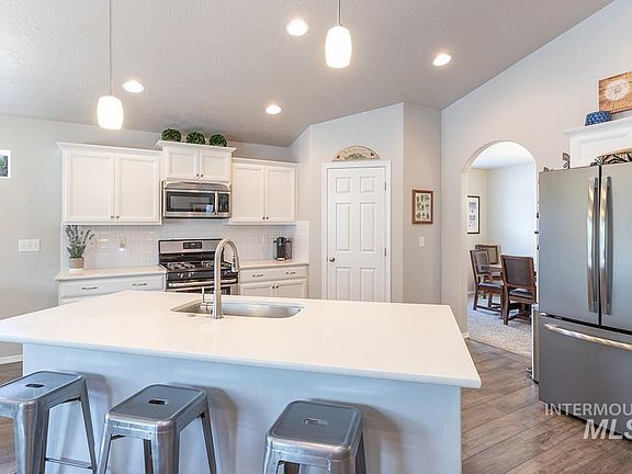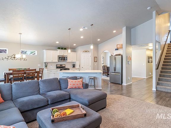 Beautiful home in the Golden Valley subdivision, a small community in south Meridian. Split bedroom floor plan with 3 bedrooms and 2 bathrooms on the main level and a large bonus room upstairs with its own half bathroom. Home sits on almost a 1/4 of an acre and has an impressive size backyard with a newer patio cover and NO rear neighbors! Enjoy the open floor plan and lovely kitchen with quartz countertops, a gas range and an island, which is perfect for entertaining! This home has been extremely well cared for and is ready for its new owner!