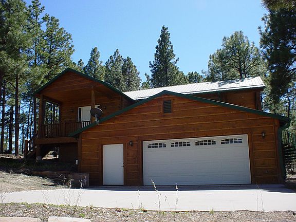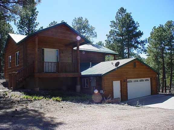 Gorgeous and well built Chipped Log Cabin in the Pines. This 3 bedroom 2 1/2 bath home is very well insulated given the log construction. Lots of wood accents including t&g ceiling in great room - wood from rodeo chediski fire. Two kitchens, Two master suites (one up and one down) Metal roof and aluminum soffits for low maintenance. Laminate, tile and carpet flooring. Natural gas forced air heat and an oversized 2-car attached garage. Amazing views off the back covered patio and covered balcony. Close proximity to shopping etc... Seller Highly Motivated - Present all offers
