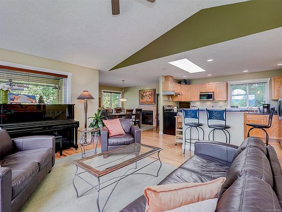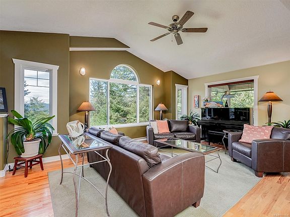 Elegant Executive Home. Tucked up a winding, landscaped drive & perched among the treetops, this fabulous 2005 built 1-owner home offers a rare blend of meticulous design & serene, natural surroundings. Engineered terraced gardens feature private nooks throughout, creating a zen retreat. Open-concept layout provides generous space while maintaining privacy, perfect for large/extended families, or easily suited for income potential. Main level showcases rich wood floors, vaulted ceiling in living, & gas FP in formal dining. Shaker-style kitchen includes an island & SS appliances. Entertainment-sized deck, partially covered for year-round enjoyment. Primary suite boasts WIC & spa-like ensuite w/soaker tub. Downstairs offers flexible living w/a massive rec.room, family room & easy suite potential! Spotless dbl garage provides ample parking & storage. Extra perks include heat pump, new HWT & wired generator. Incredible location near parks, hiking, kayaking, & biking with no Sooke Traffic!