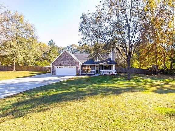 Beautiful Ranch on oversized cul-de-sac lot with private, fenced backyard. 3 bedroom/2 bath, with 2 car garage. Open floorplan. Wood look floors throughout, secondary bedrooms has carpet. Updated open kitchen with granite countertops, tile backsplash, touchless faucet and stainless steel Frigidaire Gallery appliances. Large master bedroom with double trey ceilings, walk in closet, bath with garden tub, separate shower and double vanities. Rocking chair front porch and 16x20 concrete back patio perfect for entertaining. Outbuilding is 30x30 on a concrete slab. Tankless hot water heater, roof is about 3 year old, upgraded custom Leaf Filter 6 inch gutters. Septic serviced Oct 2021. Extra parking pad. Almost 1 acre lot! Must See!