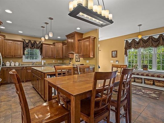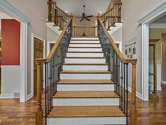 The soothing sound of a nearby waterfall sets the tone for relaxation here! An outdoor oasis centers a covered screen porch and open-air seating areas around an intimate in ground pool, with plenty of yard space for your family to recreate in the privacy of a completely enclosed mature tree border. Ceilings soar two floors in the entry and follow into the family room, where they are met by the stacked stone fireplace, before they level to a 10 ft rise in the balance of the home. Stellar handcrafted maple kitchen with furniture like center island, topped in rich granite. Rich crown mouldings, hardwood floors. Sweeping oak staircase with wrought iron spindles. Split bedroom design. Luxurious owner suite with claw foot soaking tub nestled between his and her sinks, expansive walk-in tile shower with dual heads. Theater and workout rooms reside in partially finished poured concrete basement. High grade cedar look vinyl siding meets stacked stone connecting it to the landscape grade.