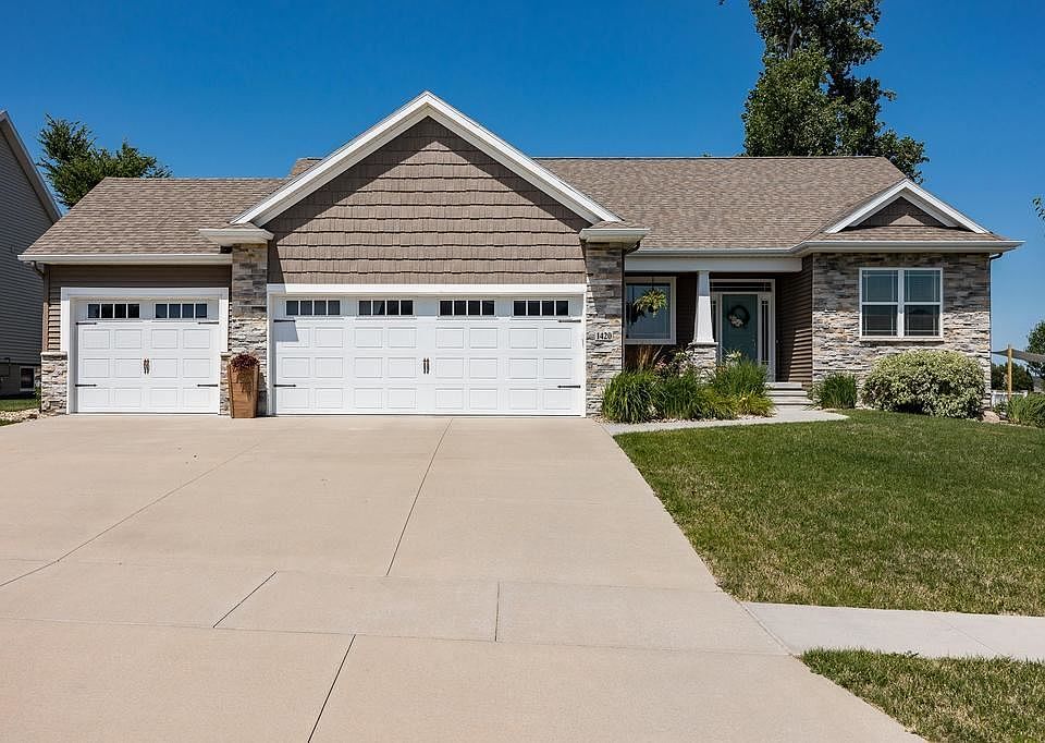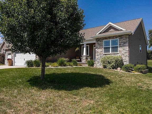 This gorgeous ranch in Marion is complete with all the finishing touches! You’ll love the neighborhood – close to trails, shopping, restaurants, and in Linn Mar School District! Enjoy your coffee on the peaceful covered front porch. Once inside, you’re sure to notice no detail was missed and everything has been meticulously maintained! The great room features 10’ ceilings and a floor to ceiling gas fireplace with stacked stone. Maple hardwood flooring continues from the hallways into the kitchen complete with white shaker cabinets, quartz countertops with undermount sink, tile backsplash, stainless steel appliances, corner pantry, and dining area with sliders to the back patio. The spacious main level laundry room is finished with cabinets and a folding counter. A convenient drop zone with cubbies is off the oversized 3 car attached garage. The primary suite serves as your own private sanctuary complete with the ultimate en-suite bath with double vanity, plus a separate vanity for getting ready, and a huge tiled shower with bench. Two additional bedrooms with wood accent walls and second full bathroom complete the main level, separated from the living space by a beautiful sliding barn door. The lower level features a large rec room with theatre space, 4th bedroom, 3rd full bathroom, plus plenty of storage space. Outside, enjoy the patio with sun shade and firepit area with natural stone retaining wall, plus a tree house with swing set and a garden! Don’t miss this beautiful home!