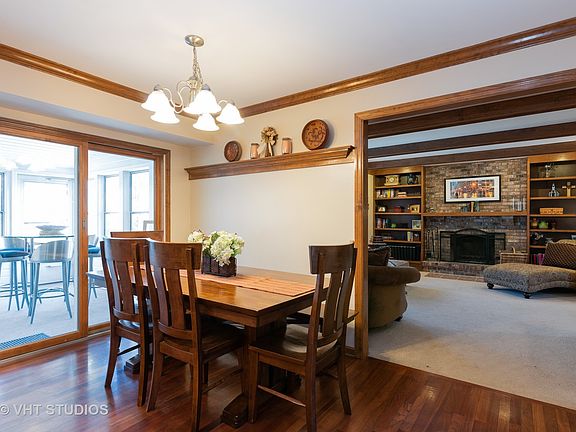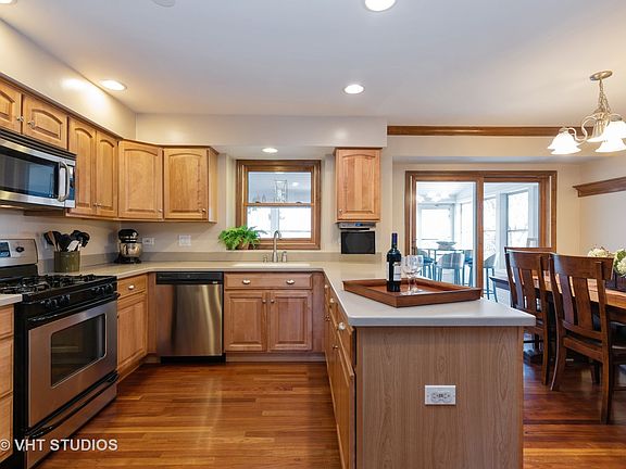 Fabulous 4 bed, 2.5 bath home in the sought after Gaslight West subdivision. An open, bright foyer with cherrywood flooring leads into the spacious eat-in kitchen with lovely hickory cabinetry, a large wrap around penninsula, all stainless appliances and more cherry floors. The eat-in area opens to a great, big screened sunroom with wrap around windows and gas heater for the winter months. There's a large formal dining room with cool barn doors, a formal living room and a big family room with a woodburning brick fireplace and lots of built-in shelves capped off with a wood beamed ceiling. The huge master bedroom suite has a large walk-in closet and updated bath with a tub and walk-in shower and double sinks. Three additional good sized bedrooms with walk-in closets with custom shelving and drawers and an updated full bath with double sinks complete the 2nd floor. The basement space is designed for a rec room/family room space and features an awesome crafting room and extra storage space. Also featuring a first floor laundry room/mud room and half bath. The great big backyard has mature trees and a brick paver patio. The 2-car garage has a large bump out in back perfect for a tractor or motorcycle with a door to the backyard. All this in a lovely, hilly neighborhood close to schools, parks and downtown Algonquin. Seller is offering a $2,500 carpet credit.
