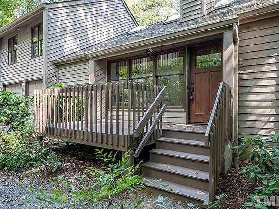 Experience your own botanical garden in this wooded retreat close to the NC Botanical Gardens. Enjoy the outdoors on the spacious deck and patio. A contemporary rustic feel envelopes you in the vaulted family room with center fireplace. The kitchen offers views of the lush backyard that will make cooking that much more enjoyable. The second floor boasts a generous master suite with an attached study. The two additional bedrooms are joined by jack & jill bath. Minutes from UNC. Welcome Home.
