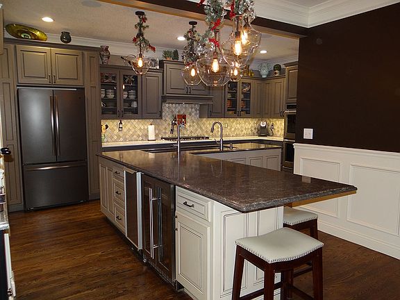 Custom kitchen by Custom Wood Products provides an open kitchen / dining room floor plan that is perfect for entertaining. Five-foot Galley Sink is the most versatile sink / prep station / food serving / additional countertop space, you will ever find. Huge kitchen island seats five and is the perfect place to host guests while you prepare your meal. Gas stovetop / Double Ovens / Drawer Microwave / Cabinet Paneled Drawer Dishwasher. Huge pantry with five pull out drawers (21” deep by 32” wide). Classy hidden spice racks. Super organized and designed to perfection. Built-in Beer/Wine Refrigerator and Ice Maker in your island. Granite and Quartz countertops.