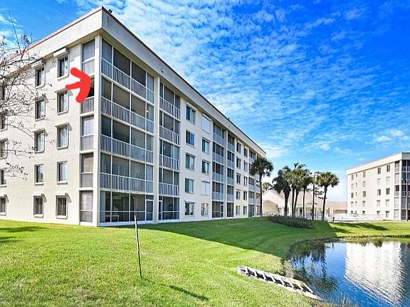 Beautifully well maintained condo in this 55+ community is ready to move-in. This 2 Bedroom, 2 bathroom, corner condo on the 4th floor has a large balcony overlooking the pond with a great water view. You're just a few steps from your own 1 car garage. Kitchen with pass-thru bar is fully equipped with all appliances for entertaining in your spacious living room. Ammenities include a beautiful pool, community clubhouse, fully kitchen for events, car wash, gym, library and shuffleboard. Located in the heart of Rockledge , just a short drive to historic Cocoa Village shops and dining.
