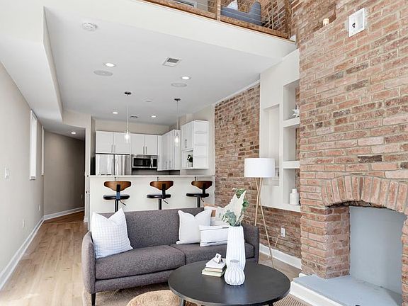 Prepared to be wowed! Stunning double height ceiling greets you, complemented by exposed brick from the floors all the way to the ceilings. Enjoy this dramatic architectural feature from your lofted den, warmed by the exposed brick and natural sunlight pouring in from your Southern exposure! Kick back in this inspiring space, or let your creative juices flow in your bright and airy office or artist studio. The addition of a pullout couch easily makes this the perfect sleeping space for overnight guests. Enjoy your private, and fenced deck in the warmer months and cozy up in the cooler months with your outdoor chiminea. The perfect outdoor space for a city-dweller with low maintenance. The upper level features a spacious primary bedroom, with a beautifully renovated ensuite bathroom with double vanity, as well as a generously sized walk-in closet. The home is rounded out with two additional bedrooms, and full bathroom on the upper levels, as well as a half bath on the first floor. Just 1 block to The Roost and Metro, close to dining and Eastern Market - this home has it all!
