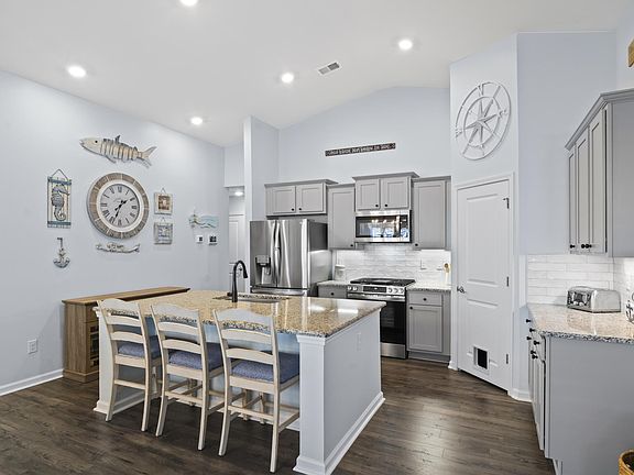 - Features: Breakfast Bar, Kitchen Island, Pantry, Stainless Steel Appliances, Solid Surface Counters