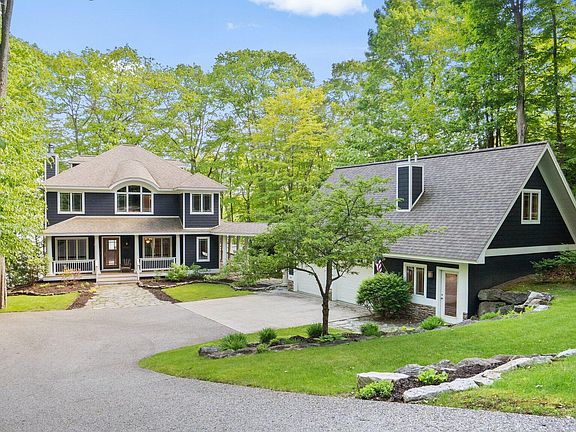 An exquisite home tucked away on stunning O'Rourke (Hidden Valley) Lake! Custom built home with flowing design that features an open kitchen, dining and gathering room boasting gorgeous lake views. Additional formal dining room, studios den for reading your book and enjoying what Northern Michigan has to offer. Private master ensuite, 3 additional bedrooms with sitting room, and full bath. Lower level features yet another family room with lakeside views, additional room for study, crafts, you name it! Landscaped beautifully with a stone accent stepping leading you to the water to be dockside. 2-plus car garage, with studio apartment. All away from the busy roads & nestled amongst large lots with mature trees on a quiet cul-de-sac street, it will be easy to relax and enjoy lake living.