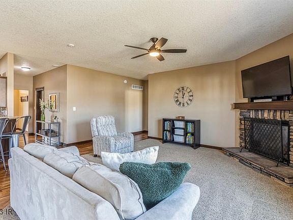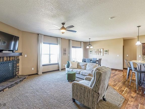 Welcome to this custom-built ranch with 5 bedrooms and over 2900 sq. feet of finish! Located on a cul-de-sac of a quiet, family-friendly neighborhood, just steps from Meadow View Elementary, Evans Park, & the Aquatic Center, this home has wonderful curb appeal with new front landscaping, stone accents, & a large front porch, perfect for evening relaxation. The entryway leads into an open living area featuring a large corner fireplace with stone surround. Stunning open kitchen with upgraded cabinets, corner pantry, granite countertops, tile backsplash & nearly-new GE stainless steel appliances that will stay with the home. The dining area features access to the back deck. The master retreat boasts a walk-in closet with a pass-through to laundry & en-suite bathroom with dual vanities, granite countertops and tiled shower. The main level also features two additional bedrooms, separate from the master, another full bathroom with dual vanities, as well as a mud/laundry room with built-in lockers between garage & kitchen. The finished lower level includes two bedrooms, one full bath & large home theatre room with daylight windows throughout and 2 large storage rooms. High-end upgrades include: GE stainless steel appliances, shaker-style cabinetry, custom woodwork and trim, wide-plank hand scarped wood flooring, home automation lighting, and a 120" home theatre screen with projector, perfect for entertaining. This home is wired for cable, network/phones, security, & surround sound.