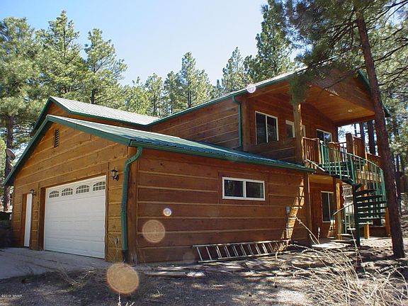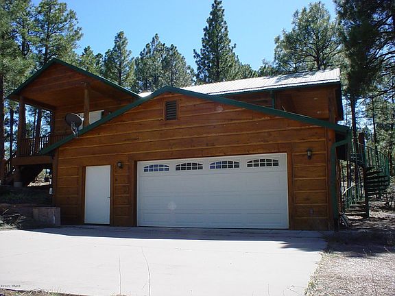 Gorgeous and well built Chipped Log Cabin in the Pines. This 3 bedroom 2 1/2 bath home is very well insulated given the log construction. Lots of wood accents including t&g ceiling in great room - wood from rodeo chediski fire. Two kitchens, Two master suites (one up and one down) Metal roof and aluminum soffits for low maintenance. Laminate, tile and carpet flooring. Natural gas forced air heat and an oversized 2-car attached garage. Amazing views off the back covered patio and covered balcony. Close proximity to shopping etc... Seller Highly Motivated - Present all offers