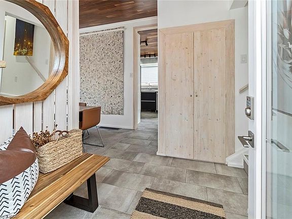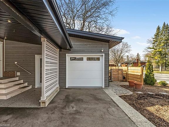 This bright, calm, classic Mid-Century Modern home showcases clean lines, open spaces, and a seamless connection to nature. Every finish - from the flooring and Acacia wood vaulted ceilings to the kitchen, lighting, and exterior — respects authentic MCM design principles. Thoughtfully renewed in 2019, the home features high-performance insulation, new roof sheathing, tight air sealing, excellent ventilation, Schluter underlay beneath all tile flooring, reinforced subfloors, and Dri-Core flooring. Stainless steel appliances and multiple dimmable lighting options in every room allow you to tailor the atmosphere to your mood. The home offers three full bathrooms, including a spa-like retreat with a 66” freestanding soaker tub, rainfall shower with glass surround, and a floating double-sink vanity. Walk out from the lower level to an expansive, fully fenced and beautifully landscaped yard complete with a pergola—perfect for relaxing or entertaining. A side deck with gas hook-up adds even more versatility. The brightly lit 2-car garage/workshop features high ceilings, insulation, front and rear access to the deck, and an 80A subpanel capable of supporting electric vehicle charging. A covered carport with custom privacy screens adds additional sheltered parking. Located in a court and just steps from a wooded park, playgrounds, an outstanding public waterpark/pool/rec centre/arena, schools, and churches. Minutes to big-box shopping and major transportation. This property offers a rare combination of timeless Mid-Century Modern design, modern amenities, and true energy efficiency, delivering comfort, style, and practicality.