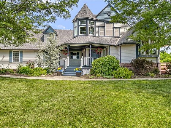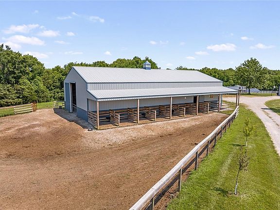 Motivated seller on this GORGEOUS 17 ACRE COUNTRY ESTATE IN BALDWIN CITY, KS! Pre-inspection report and seller provided home warranty will give peace of mind to buyers. Plenty of room in this nearly 4,000 sq. ft 1.5 story home with five bedrooms and a finished, walk-out lower level. Energy saving solar panel had reduced electric bills to almost nothing! Charming, covered front porch overlooks the front pasture and lush landscaping. Completely remodeled kitchen is a chef's dream, featuring a massive granite island that seats 8, a coffee bar, gas cooktop, double over and opens to a large, freshly painted deck. Spacious primary suite has sitting room/office, updated spa-like bath and walk-in closet that connects to the mud room/laundry room. Top notch QSI barn has water, electricity, two 12 x 12 stalls with runs, tack room, seven 8 x 8 feeding stalls and small indoor arena. Multiple pastures with loafing sheds 140 x 80 outdoor arena, auto waterer, vinyl fencing and wood/smooth wire combo, treed trails, winding creek, and even a custom chicken coop! So much to love about this property! Located on blacktop just 15 minutes to Lawrence, and 15 minutes to Gardner. Don't miss the amazing drone video of this property!