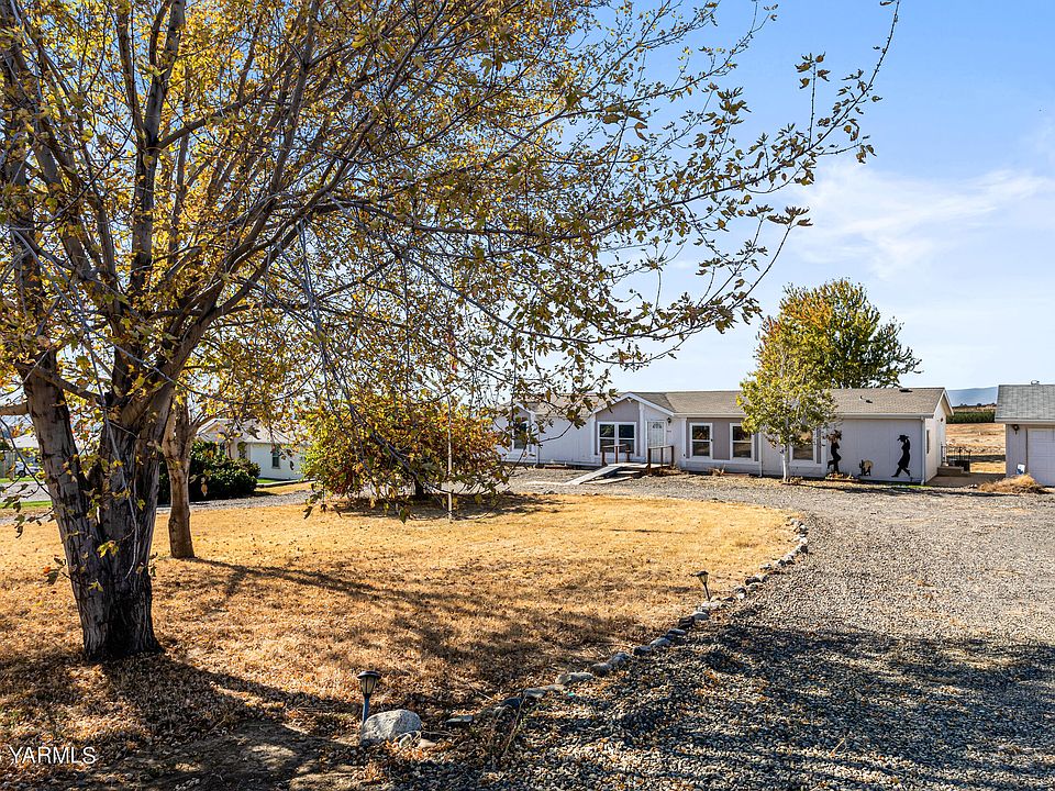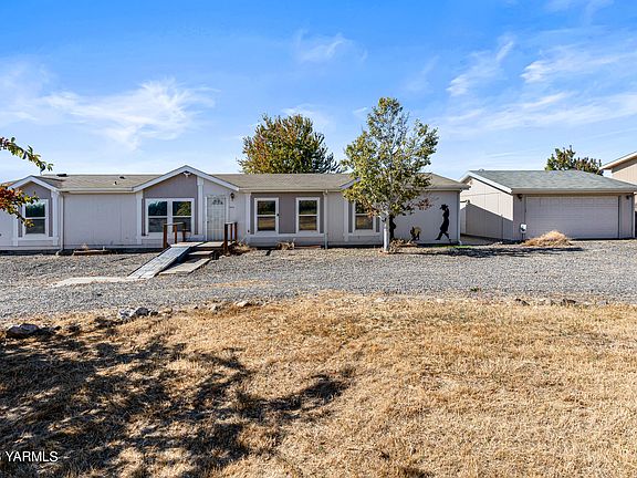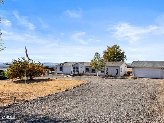 Welcome to Country Living with a stunning VIEW!! This lovely home sits on an impressive 1.12 irrigated acres in the heart of wine country. Move in, ready to enjoy lovely scenic views of the mountains and Yakima Valley. 2002 built manufactured home features, 4 Bedrooms w/ office-den attached to the primary bedroom. Spacious primary suite includes a large walk-in closet, full bath with vanity, a stand-up shower and garden tub. home features 2 Full baths, convenient detached 2 garage -circular driveway makes for easy access to the garage and property in general. Come out to the country and enjoy peaceful living surrounded by wineries, vineyards, and orchards while enjoying the scenic mountain views. Call today your favorite realtor for your private tour.