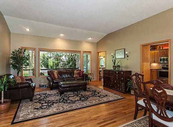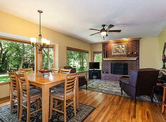 This fabulous ranch home backs to the East on a beautiful wooded quiet cul-de-sac lot! Large windows show off the spectacular view of the mature trees. Hearth kitchen has eating bar, pantry, granite countertops, and a beautiful view of the covered deck with stone patio that's perfect for entertaining. Master suite has walk in closet, bath with soaker tub, 2 vanities, separate shower and doorway to the large covered deck. The walk out lower level boasts a huge Rec room/Family room with wet bar and dramatic stone fireplace, 2 additional bedrooms, and a full bath. Comp roof is only 2 years old, and gutter helmets have been installed for maintenance free gutters!