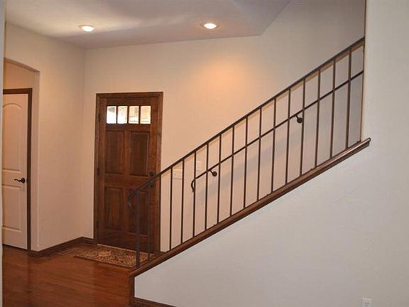 Charming story and a half in Wicklow. An open floor plan features living room with stone gas fireplace, high ceilings, and open to the large dining area and kitchen with granite counters, black appliances, walk-in pantry and oak cabinetry all with hardwood flooring and lightly textured walls. Interior has been re-painted in the past year. A great utility/mud room has a bench and coat rack plus cabinets. A nice size storage closet is under the stairs. Two bedrooms including the master are on the main level and two baths. High cathedral ceiling is in the guest bedroom. The upstairs includes a nice size landing, two large bedrooms and one bath. Access to partially floored attic is off one bedroom. In back is a covered patio, new privacy fence and nice landscaping.