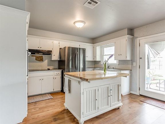 This sweet Ranch style home is waiting for you. 3 bedroom, 1.5 bath home is ready for you to move in. The kitchen boasts white and Stainless steel appliances, white cabinets and backsplash. The Island is white with a butcherblock top with a breakfast bar. The primary bedroom has an attached half bathroom. The french doors and the picture window in the living room look out onto the large backyard. New HVAC 5 years ago. Exterior new repaint. Don't let this one pass you up!!