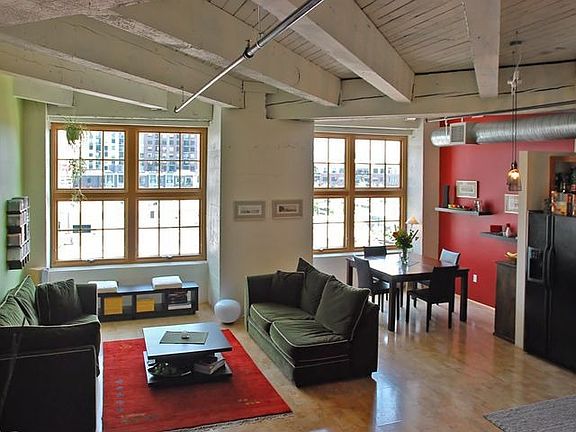 Dramatic light-filled loft w/2 stories/2 separate entrances. Live/work. Faces east w/views of City/Mtns. 1BD w/room for 2nd BD/office? All the upgrades w/huge beamed ceilings, cork flrs, Pella windws, cherry cabinets, custom-built kitchen island, & tile counters. Storage. Fantastic value! Tax freeze thru 2016.