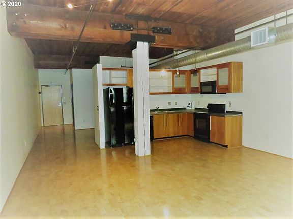 Come live in the thriving Pearl district. Beautiful courtyard view location. Open plan one bedroom with high ceilings and a spacious authentic feel, with high wood ceilings and exposed old growth timer trusses, exposed duct-work, and large windows. Includes 1 indoor parking space & large storage unit. HOA includes water (and hot water), sewer, garbage, exterior maintenance, and common areas! Come see it today!