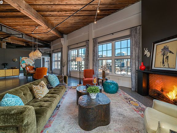 Among a short list of the finest homes in the Pearl, this SE corner Penthouse exudes the warmth of historic wood ceilings, custom cabinetry and sophisticated terrazzo floors. Motorized blinds, whole-house sound system. Baths feature Ann Sachs stone/tile and Kalista fixtures. Chef's kitchen offers mahogany soft-close cabinetry, honed granite counters w/ Viking, SubZero and Miele. Two ensuite masters, 3rd bdrm + 2 bonus spaces. 410 SF rooftop deck with views from the Fremont to downtown skyline.