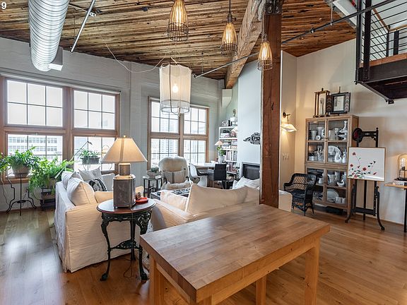 Prime Pearl location on Streetcar. Historic Marshall Wells loft Penthouse with private deck and expansive views. Updates inc. gourmet kitchen with gas range, custom pantry & built-ins, updated bathrooms & lots of storage. A piece of history remains with original old growth exposed beams & ceilings. The second level has spacious rooms, walk in custom closets and a fantastic deck for outdoor dining, container gardening, or city viewing.