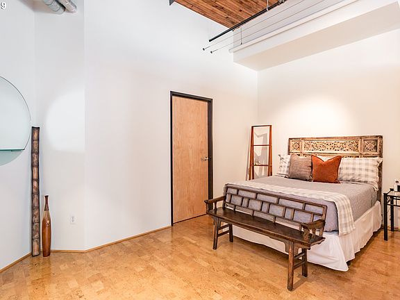 Prime Pearl location on Streetcar. Top floor loft in historic building. Spacious 1 level floor plan w/ separated bedroom, elevated library/den area. Remodeled kitchen & bath.Original wood fir beams & high ceilings, concrete walls, huge custom finished walk-in closet & pantry. Extra storage under den area.Wall of windows overlooking historic courtyard. Floorplan would allow additional bedroom. Custom features throughout! Open 2/5 11-1