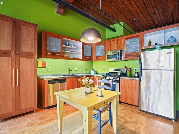 Come see this modern & spacious condo in the heart of the pearl, full of light & special touches. 13 ft ceilings, exposed beams, cork flooring, custom lighting &built-in features including sitting bench w/ shoe cabinet, key cabinet & more. A unique open floor plan loft blended w/ a private bedroom area & perfect for adding a second. One deeded parking spot next to a large storage unit w/ window. Enjoy four seasons in Forest Park, Powells, Art galleries, cafes, restaurants. An artists' Mecca!