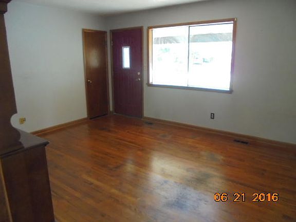 Excellent location. Brick and vinyl sided home that includes 2 bedrooms, 1 bath, living room, dining room with additional open room that could be a 3rd bedroom with new carpeting. Updated kitchen with plenty of storage areas and appliances remaining. Living room and bedrooms with hardwood floors. Two car attached garage and fenced back yard. Home is located in a 100 year flood zone.