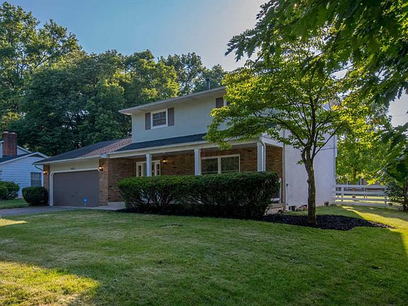 RECENT UPDATES! Move-in ready home on a 1/4 acre lot with mature trees! Fresh paint throughout! Inviting living room & dining room feature hardwood floors. Updated kitchen includes tile flooring, quartz countertops, pantry & plenty of cabinet and counter space. Family room offers hardwood floors, a brick fireplace and walk out to the backyard. Updated 1/2 bath with marble countertop vanity completes the main level. Owners suite features dual closets & attached private bath with tile flooring & marble counter vanity. Two spacious guest bedrooms with ceiling fans & an updated full bath complete the second level. Basement has an additional finished entertainment area & PLENTY of storage space! Patio & storage shed in the spacious yard! Minutes to I-270, I-70 and Big Walnut Creek!