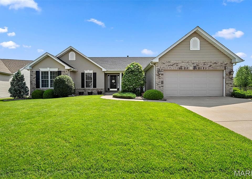 Impeccably maintained 3 BD, 2.5 BA ranch w/a huge Kitchen! This immaculate home will wow you w/spacious rooms, neutral decor & the incredible care it has been given. Updates inc HVAC (June 2024), humidifier (June 2024) & roof (May 2024). The curb appeal is exquisite w/brick facade, vinyl siding, arch shingles, coach lights, lush landscape & beautifully maint lawn. Features inc 2,369 s/f, vltd clngs in the Grt Rm & Primary Bdr, FP, Andersen windows, wood flrs in the Entry-DR, huge Kitchen, island w/seating, staggered height cabinets, sm top stove, D/W, micro, refrig, large window at the Kit sink, dbl door entry to the Primary Suite, W/I closet, soaking tub, shower, dual vanities, large bdrms, laundry room w/room for a 2nd fridge/freezer, wash sink, half bath at the owners entry, paver patio w/landscape, R/I bath, 2 elec pnls, 50 gal w/h, x-deep garage, level yard & more. Located near the neighborhood playground & sports court. Desirable Ft Zum schools, beautiful home, SO MUCH TO LOVE!