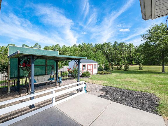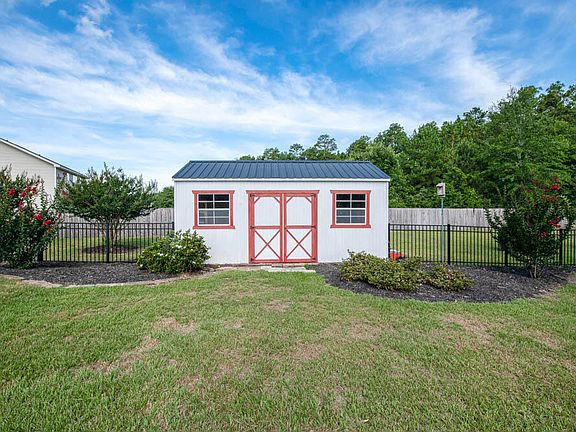''Situated on a generous 1 1/4 acre lot, this stunning 4-bedroom, 2-full bath home features a charming rocking chair front porch and has been meticulously landscaped by its current owner, making it a true standout in the neighborhood. The lush landscaping includes magnolias, crepe myrtles, hollies, and more, creating a picturesque setting.As you step inside, you'll be greeted by wonderful wood floors throughout this all one-level home. The layout features a split bedroom plan, with the living room boasting a cozy gas fireplace, vaulted ceiling, and a nice ceiling fan. The dining room offers a tray ceiling. The kitchen is a chef's dream, equipped with a great refrigerator, fabulous double oven with gas stove top, built-in microwave, super quiet Bosch dishwasher, breakfast bar, and a breakfast room overlooking the level backyard. The owner's bedroom features a tray ceiling and fan, with an ensuite owner's bathroom that includes upgraded tile floor, tub, separate shower, water closet, double sink vanity, linen closet, and a nice walk-in closet.Additional features of this home include spare bedrooms with ceiling fans and ample closet space, a hall bath with a double sink vanity and water closet, perfect for guests or children. Outside, you'll find a fantastic patio and pergola with a shade cover and swing, perfect for outdoor relaxation.Other amenities include 2-inch blinds, gutters, a sprinkler system in the front yard, added insulation, a screen and glass option in the backdoor, a storage building with reinforced flooring ideal for storing a riding lawn mower, work tables, and cabinets (which stay with the property). Additionally, a 48-inch lawn mower, trailer, and fertilizer aerator are included. The property also features added fencing, with the lot extending beyond the fence to the tree line, offering privacy and a sense of spaciousness.''
