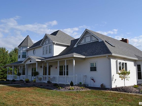 This custom built home is located on 7.2 acres with 45x36 pole barn. Spacious plan offers large formal living room, formal dining room, vaulted ceiling family room w/ stone fireplace. All new kitchen with abundance of cabinetry, double oven, island, and quartz countertops. Master bedroom opens to year round sun room and has en suite bath with updated walk in shower. Beautiful entry foyer with open stairway balcony and second level guest bath complete with 2 large bedrooms. Attached 3 car garage, unfinished partial basement with storage, large patio, and partially fenced back yard. Beautiful acreage and abundant wildlife.