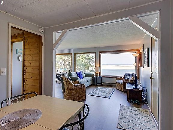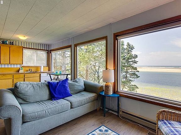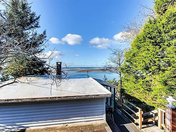 A RARE find! Sweet Bay/Ocean front home has been in the same family for decades and is on Pearl St, arguably the most coveted location in Netarts. Perched up high overlooking Netarts Bay and the Pacific beyond, this home offers panoramic views and breathtaking sunsets. The cozy cabin features an open & bright greatroom w/ a wall of windows and a main floor bedroom & bath. Family room and 2 BR/full bath down. Stairs directly to beach!