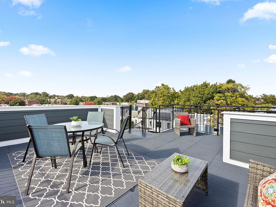 This top-down new 1712sf 2-bedroom 2.5-bathroom penthouse stunner offers FOUR private outdoor spaces: TWO decks at rear, top-floor deck off the front PLUS a knock-out 244sf roof deck! What a bonus that the expansive main level hosts TWO gathering/living rooms, one at the front and one at the rear. The white trophy kitchen with white-quartz endless island seats a party! The kitchen flows to a dining area, which leads to glass doors that spill onto a sunny, south-facing deck. BOTH bedrooms, suitably located on the upper level, have their own bathrooms and private decks! At the rear is a spacious primary bedroom suite with a sumptuous double-vanity bathroom and space for an office or reading nook. The roof deck is easily and smartly accessible from the upper-level center hallway. Separately deeded gated parking space P-2 is available for sale and $5.48/month fee. This west Columbia Heights location is central, seconds to 14th St NW dining mecca and a zip to Columbia Heights Metro, Target, Giant and Mt Pleasant St retail. See floor plans in the Documents Tab. #2 1800sf 2--bedroom PLUS den/office 2.5-bathroom is also available for $759,000,