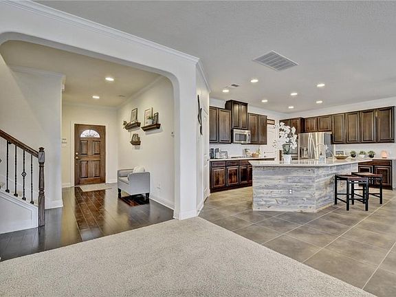 CLEAN, VACANT NOW! Adore the porches in this Swanky 4-3bath w/oversized tile. KB HOME Plan A-2881 was built with a full 4th bdrm & bath on the main floor. Extra Kitchen Perks include subway tile backsplash & rustic counter height island (weathered wood). The stainless appliance package includes a 5-burner cooktop, double oven, + bottom freezer fridge. Terrific 2nd living w/ Bedrms 2,3, laundry + oversized master are up. Walk to pool, grocery, schools. Ready Now!