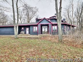 Looking for a unique, one of a kind home with privacy, woods and acreage? This custom built home by Sunbuilt Homes sits on 5 acres PLUS an additional 18.60 acres on the Sangamon River. There is a plethora of windows in this beautiful home so you can see the gorgeous setting from any room in the house. Spacious and open floor plan gives away to an effortless flow between all main rooms with hardwood flooring. Kitchen is a chefs dream with cabinets galore, plenty of countertop space and center island. Living room w/ fireplace, skylights and sliding doors leading to enclosed porch overlooking mother nature's beauty. Master suite secluded on the second floor for complete privacy with fireplace and spacious master bath. Two bedrooms on main floor share full bath.