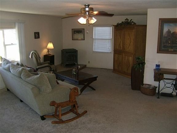 PC1899*Got horses? This property is ready for them with a 3 stall barn with tack room, 2 outdoor stalls, an open outdoor arena and 2 separate pastures, 6 fruit bearing trees, apricots, pear, apples and peaches. Updated plumbing and electric and total bathroom remodel as well as corn/pellet stove that will cut back on electric bills. Basement recently finished with huge bedroom with corner closet.