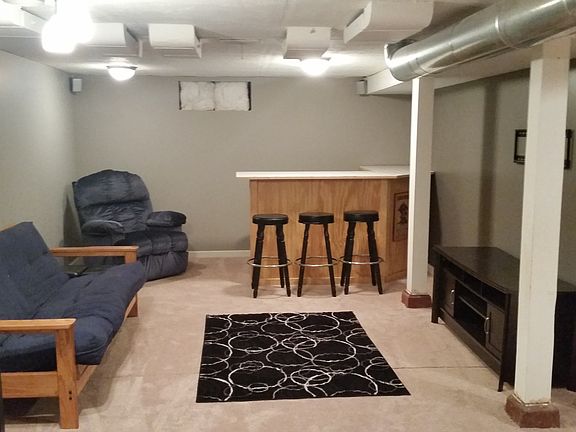 South side 2-bedroom ranch with large converted family room and partially finished basement. Both bedrooms painted in last year, new w/d and range convey with other appliances, one car garage with bonus workspace/storage. Door to breezeway, converted to family room, is currently non-functional. Siding is slate.