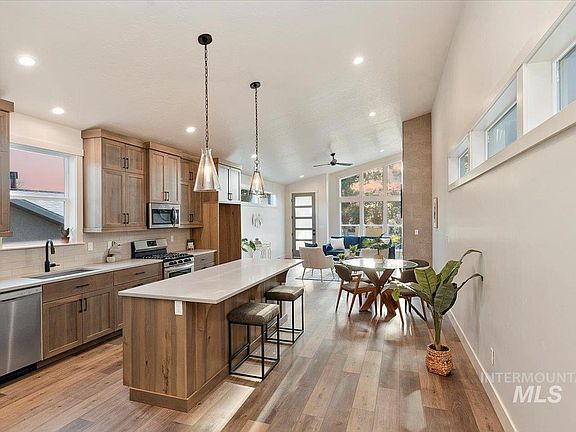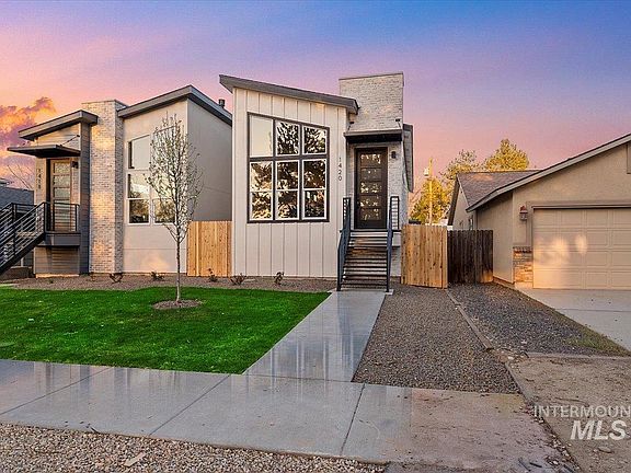 This beautiful modern home is perfectly situated just blocks away from the Boise River, greenbelt, Boise State University, the Extra Mile Arena for concerts, and all the wonderful restaurants and fun downtown Boise has to offer. This new home is just over 1 year old, and features 3 bedrooms plus an office, a beautiful open floor plan, vaulted ceilings, Floor to ceiling fireplace, quartz countertops, newer appliances- Washer, dryer and fridge as well as custom blinds. The lot features a low maintenance fully fenced back patio and 2 car garage. The home is currently being leased through June of 2024. No HOA! It would make a great permanent residence or short term/long term rental. Owner would prefer to sell both 1418 and 1420 Longmont together. Please call listing agent for details.