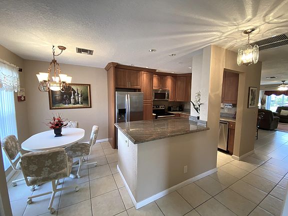 PINES OF DELRAY WEST. Don't miss seeing this EXCEPTIONAL fully renovated 2 bedroom/2 bath FULLY FURNISHED CORNER VILLA. Inside you'll find all textured (''knock-down'') walls and ceilings, all tile flooring and fully updated 17 foot long eat-in kitchen and bathrooms - including the master dressing area. There's also a ''southern exposure'' 160 square foot tiled patio with 5 sets of 55'' tall slider windows and Wrol-Ups. The kitchen boasts 39'' tall cabinetry, granite countertops, attached breakfast island with full size washer & dryer hidden beneath and all stainless steel appliances. Other features include all PGT windows with accordion shutters, a 2018 2.5 ton/14 seer AC system, a 2022 30-gallon water heater, 4 remote control paddle fans. 1420 SW 27th Ave