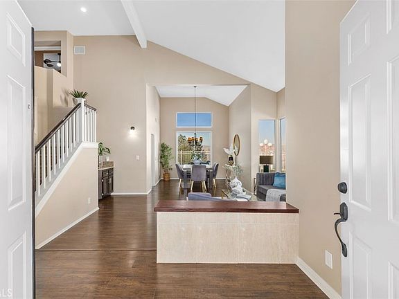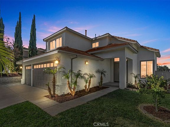Searching for an ideal Corona home where you can simply move in, unpack, and relax? Beautifully maintained, this 4-bedroom, 3-bath haven is a must-see! A lush lawn with manicured landscaping lines the driveway leading to the covered porch. Past the double door entry, discover a 2,600-sq ft interior that's crafted to impress with soaring vaulted ceilings spanning the seamlessly connected entertaining areas. Chic neutral tones pair with a fusion of dark hardwood flooring and textured tiles to create a cozy atmosphere you'll love coming home to. Upgraded Anlin windows fill the living room with radiant sun while a stylish chandelier casts an elegant glow as you host intimate dinners in the dining area. Try out new recipes in the gourmet kitchen that equips you with a suite of stainless steel appliances, handsome cabinetry, a pantry, and granite countertops extending to the 2-seater island. What could make morning coffee better than pairing it with sensational views of the backyard from the adjacent breakfast nook? Glass sliders open to the patio for those who prefer to take their meals alfresco. A striking fireplace with a tile surround radiates warmth as you enjoy game and movie nights in the comfortable family room. Wake up within the restful proportions of your private retreats, all graced with ceiling fans and ample closets. A main-level bedroom with a full bath can be utilized as a home office or accommodations for overnight guests. Surpassing all, the primary suite showcases vaulted ceilings, a sitting area with picturesque vistas, a walk-in closet, and a luxe 5-piece ensuite with a double vanity, separate shower, and spa-like soaking tub. Outside, an oasis-inspired backyard is a picture-perfect backdrop for your weekend cookouts. Immerse yourself in the fresh air as you admire the stunning panorama of the mountains and the city beyond. Other notable upgrades are newer whole-house A/C and heating systems, pre-plumbing for a water softener, vinyl fencing on one side of the property, fresh exterior paint, an attached climate-controlled 3-car garage, new laminate flooring on the staircase, and Tesla solar panels to help save on utilities. As a premium perk, all this is set close to schools, shopping, dining, and entertainment options. Plus, its close proximity to 91 FWY, 71 Expressway, and 241 Toll Rd. allows you to easily commute to Yorba Linda and Orange County. Come for a tour before it's gone for good!