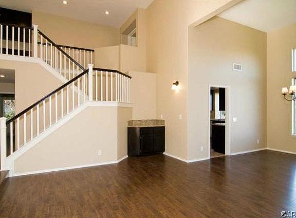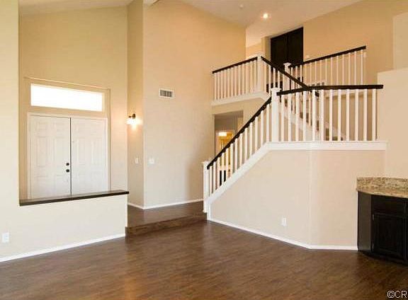 Gorgeous and updated Corona home just 1 exit from OC! You can't get much closer than this! Fresh neutral paint throughout the interior, new distressed laminate wood floors downstairs, neutral carpet upstairs, mocha glazed kitchen and bathroom cabinets throughout, Travertine floors in the kitchen. The Kitchen has granite counters with tumbled marble backsplash, stainless steel appliances and a walk in pantry. The home sits on a large lot with a view of the hills and a new stamped concrete patio off the kitchen. Spacious 3 car garage and an individual laundry room and downstairs guest bedroom and bath. This home is ready to move into and will not last long!