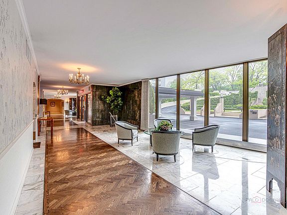 It's all about the views and location! Floor-to-ceiling windows throughout offer natural light and picturesque views! This one is sure to impress and is ready for you to move in and start making memories. A private elevator welcomes you to your personal and inviting marble foyer. Next, the expansive living/dining room combo is accented by remarkable hardwood flooring, a electric fireplace, and a wet bar. Pour a drink, light a fire, and find yourself here enjoying everyday living. With access to the kitchen this is also a perfect space for hosting that next dinner party with friends and family - start planning now, so you can show off those Lake views! The kitchen offers a plethora of white cabinets, quality appliances, and ample counter space; great for prepping those weekly meals. Right off the kitchen is an in-unit laundry room with a stackable washer/dryer and extra cabinets for even more storage. Ready to call it a night? Retreat down the hall to the luxurious main bedroom suite offering dual walk-in closets and a spa-like bath with a whirlpool tub, dual sinks with a vanity area, and a separate shower. Completing this home is an additional bedroom suite with generous closet space, a half bath, and a den showcasing custom built-ins adding not only functionality but style. Head out to your private balcony where you will find the ideal place to sit back and relax while enjoying the peaceful ambiance - a great place to get lost in a good book. Appreciate the amenities offered here: 24-hour, 7-days/week doorman, full-time valet, heated garage, pool, exercise room, and a storage locker! Parking space #11. Storage #C-39. Conveniently located across from Plaza del Lago shops, grocery, dining and more. Don't let this one slip away!