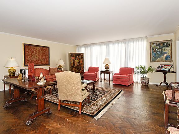 Terrific opportunity to move right into this beautiful 2 bedroom, 2.1 bath condo. Elegant foyer with garden views. Expansive living room with lovely herring bone oak floors. Dining room opens to Juliette balcony and has great views of the lake. Large galley kitchen with table space. Two generous bedrooms each with bath en suite. Powder room. Full amenity elevator building with full time doorman, on site management, exercise room, outdoor pool, valet parking, weekly car wash. Why not call this home!!